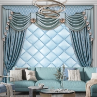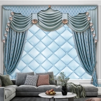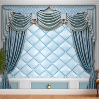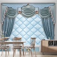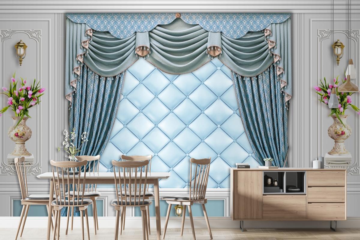 Kalıplı Klasik Iç Duvar Mavi Perde Fon 3D Duvar Kağıdı