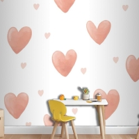 Kalp Arka Plan Sevimli Suluboya Çocuk Odası Duvar Kağıdı