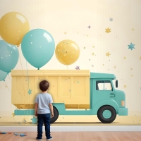 Kamyon Balon Çocuk Odası Duvar Kağıdı
