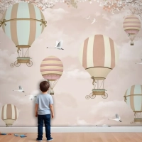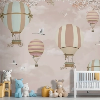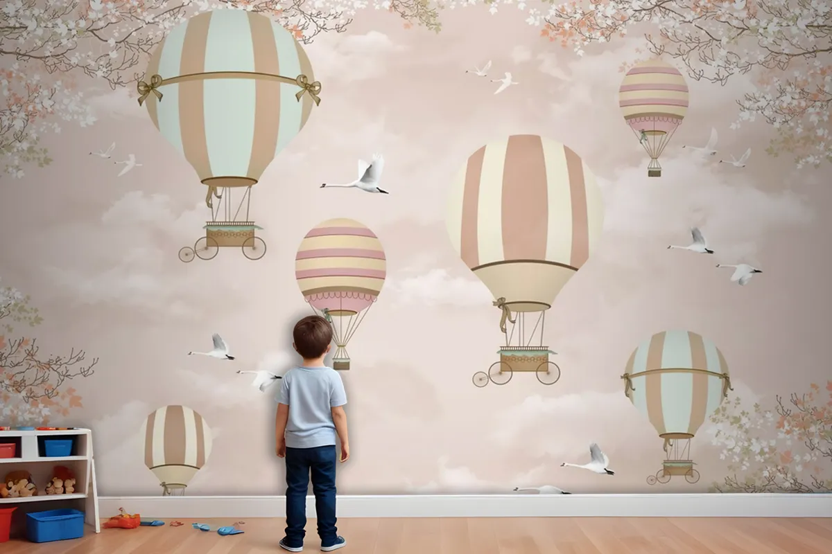 Kanatlı Balonlar Ve Uçaklar Bebek Çocuk Odası Duvar Kağıdı