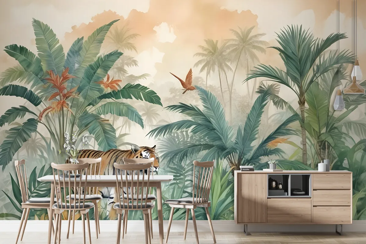 Kaplan Ve Tropikal Yapraklar Duvar Kağıdı