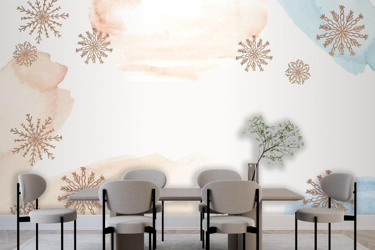 Kar Taneleri Ile Kış Arka Plan Yemek Odası Duvar Kağıdı