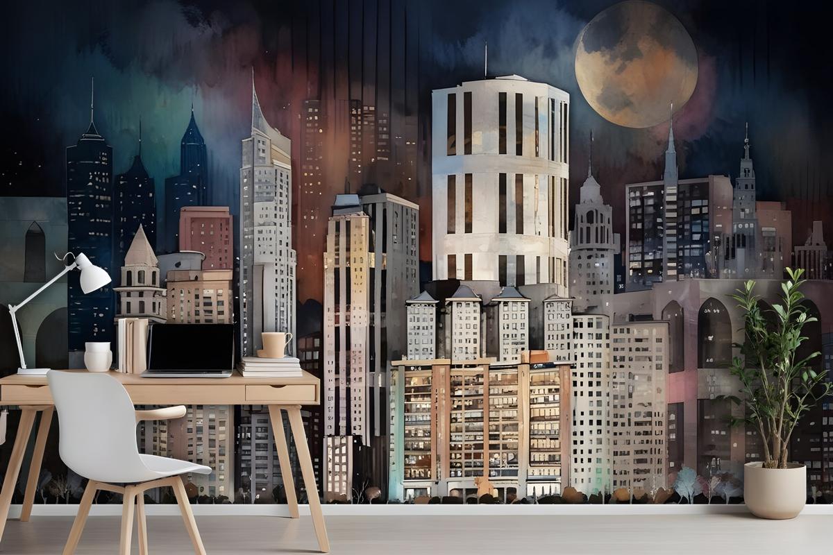Karanlık Mozaik Şehir Manzarası Duvar Kağıdı