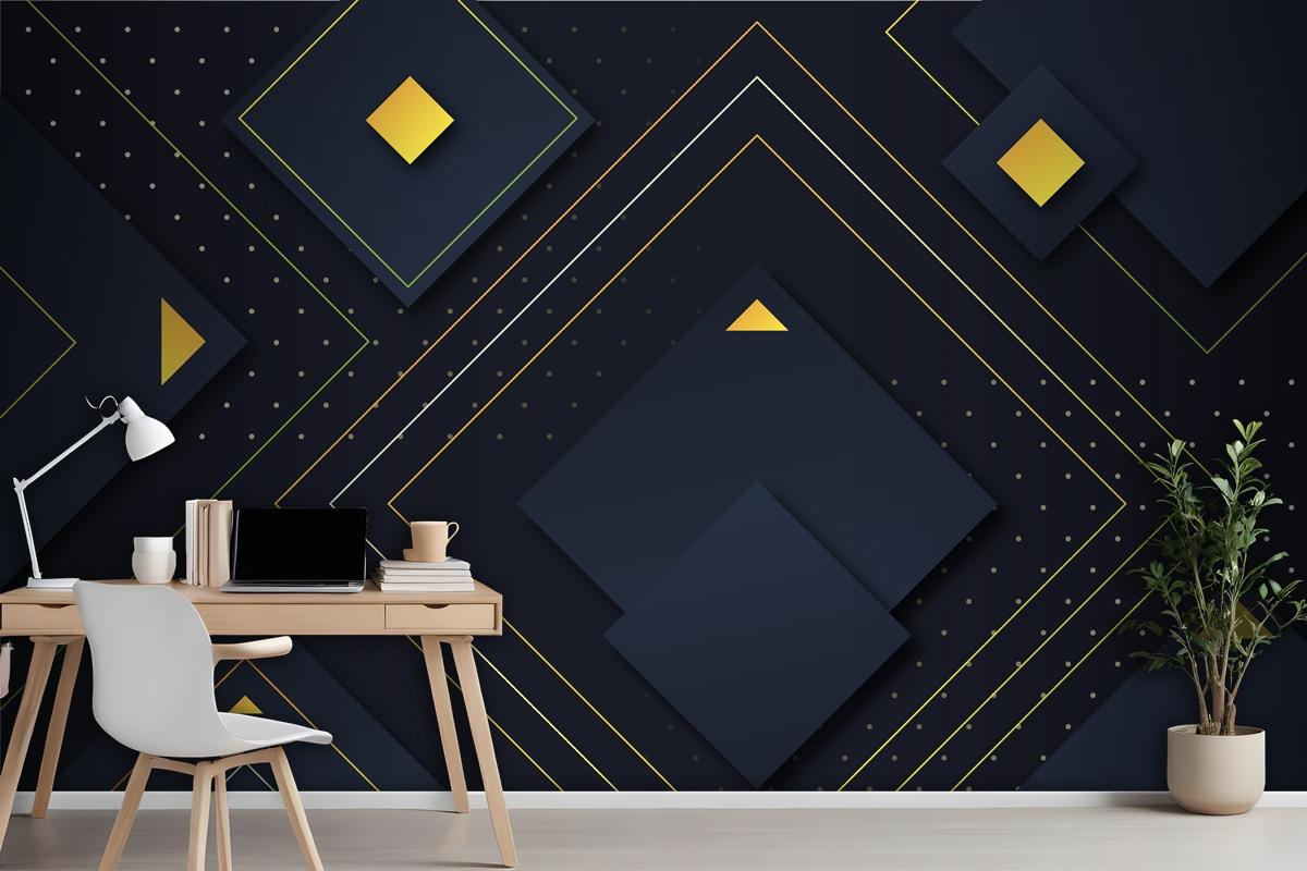 Karanlık Ofis Duvar Kağıdı Duvarındaki Degrade Geometrik Şekiller