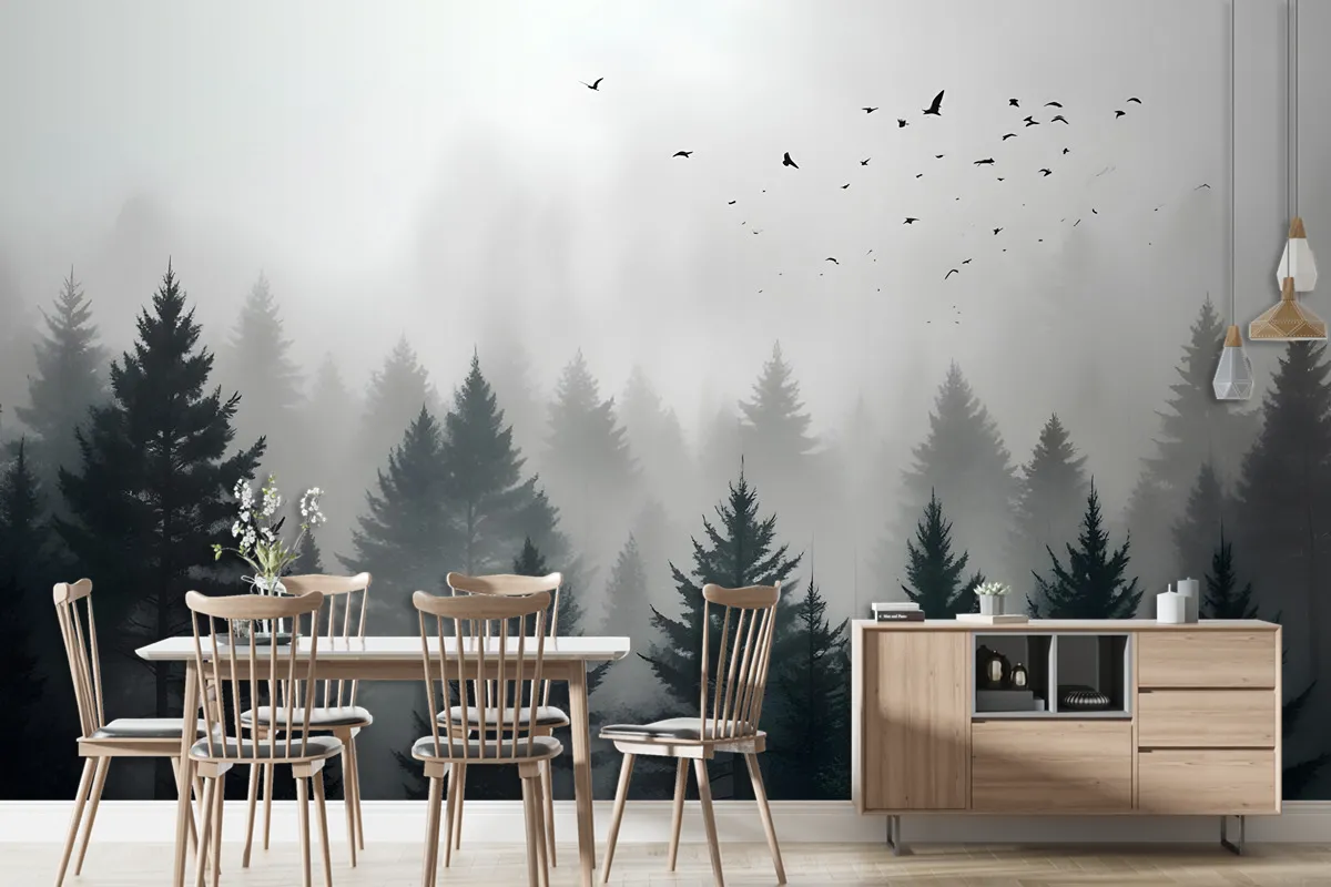 Karanlık Orman Puslu Manzara Duvar Kağıdı