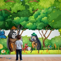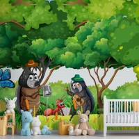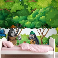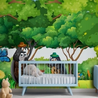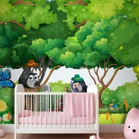 Karikatür Böcekler Çocuk Odası Duvar Kağıdı Ile Doğa Sahnesi