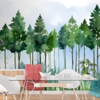Karikatür Kavak Ağacı Duvar Kağıdı