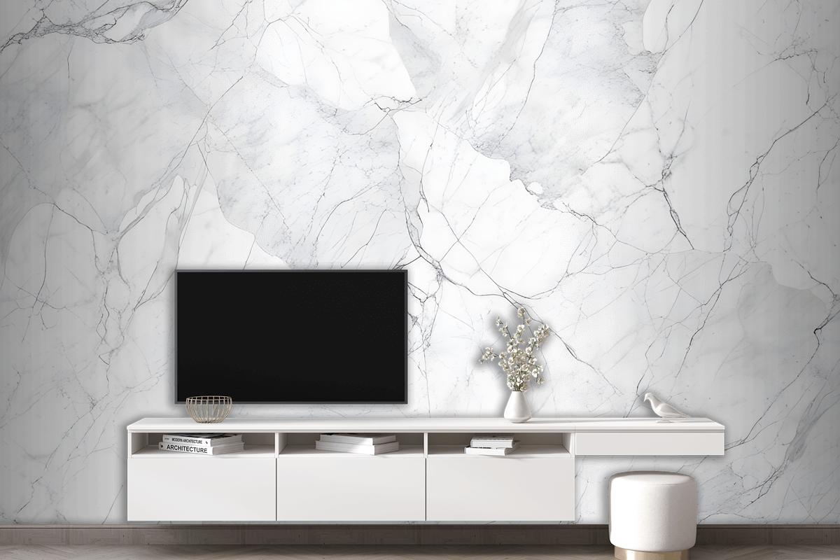 Karmaşık Gri Damarlı Oturma Odası Salon Duvar Kağıdı Zarif Beyaz Mermer Dokusu