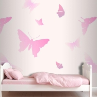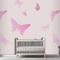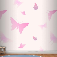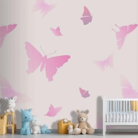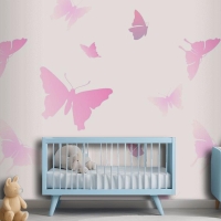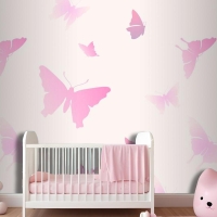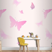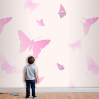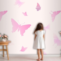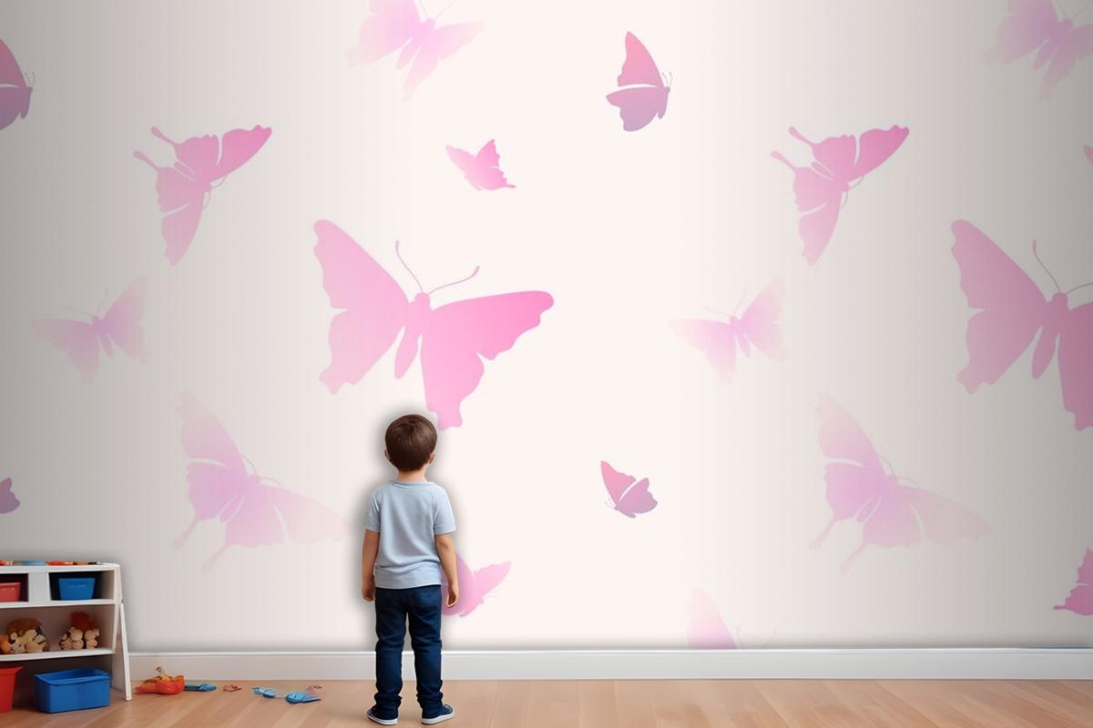 Kelebek Desenli Kadınsı Pembe Estetik Çocuk Odası Duvar Kağıdı