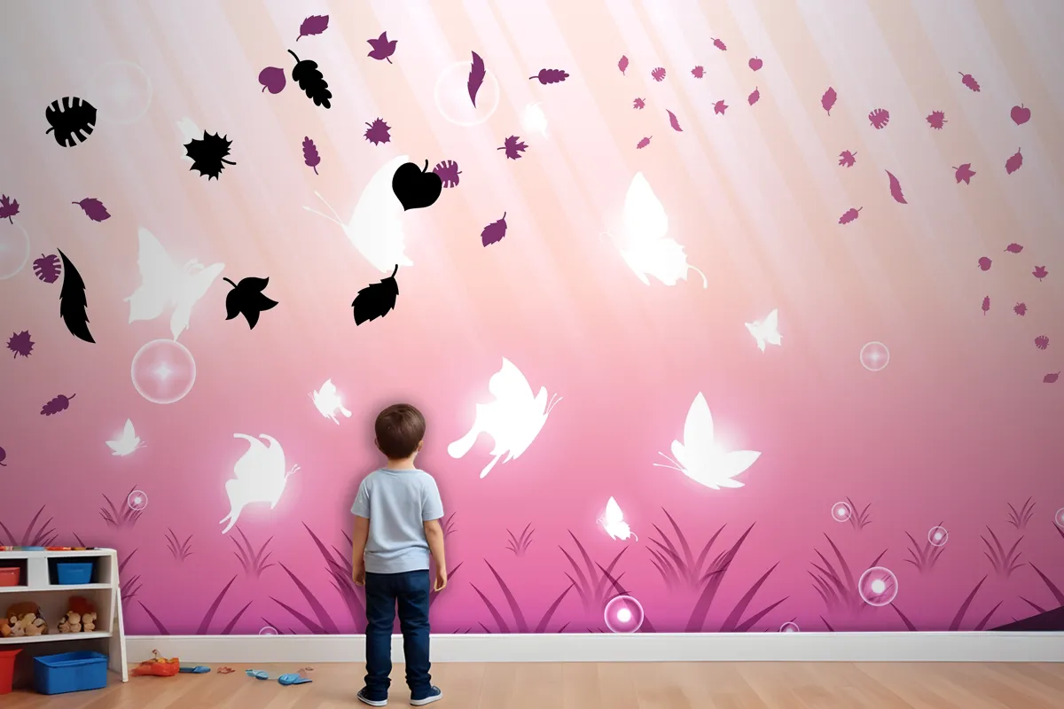 Kelebekler Böcekler Parlayan Işık Parlayan Yanıp Sönen Karanlık Arka Plan Çocuk Odası Duvar Kağıdı