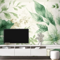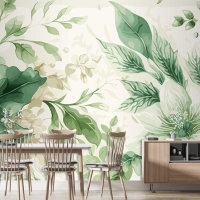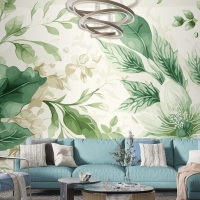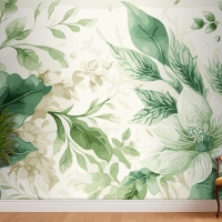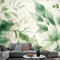 Kesintisiz Suluboya Yeşil Ve Bej Çiçek Desenli Oturma Odası Duvar Kağıdı