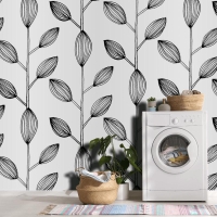 Kesintisiz Tek Renkli Yaprak Desen Tasarımı Duvar Kağıdı