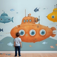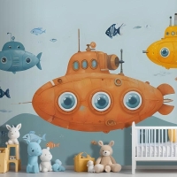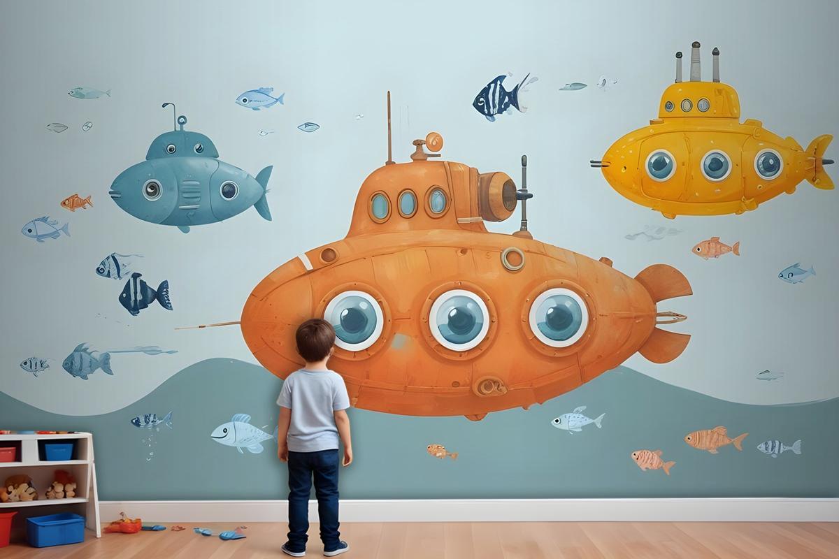 Kids Boys Denizaltı Çocuk Odası Duvar Kağıdı Ile Suluboya Sualtı
