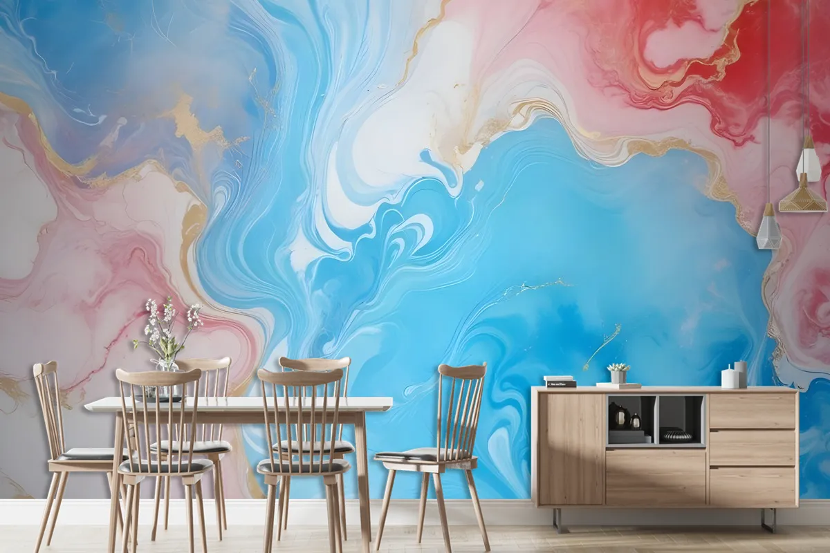 Kırmızı Sıçrama Duvar Kağıdı Ile Mavi Mermer