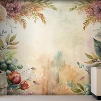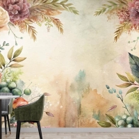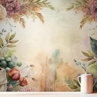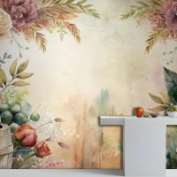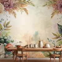 Kırsal Çiçek Aranjmanı İçeren Suluboya Arka Plan Mutfak Duvar Kağıdı