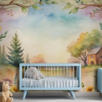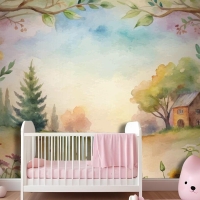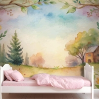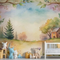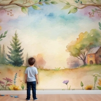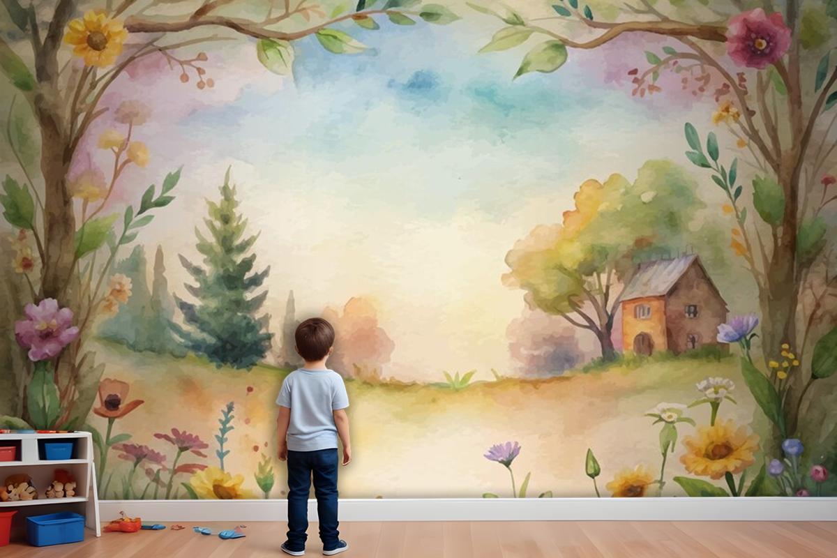 Kırsal Çocuk Odası Duvar Kağıdı Duvarında Kır Çiçeği Suluboya Arkaplan