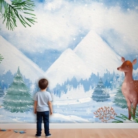 Kış Sezonu Kutlaması Çocuk Odası Duvar Kağıdı Için Suluboya Arka Plan