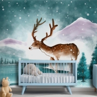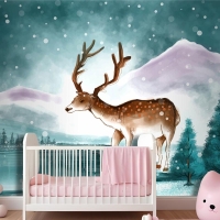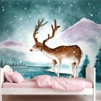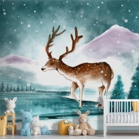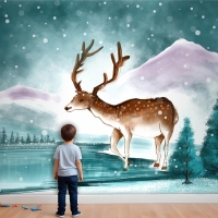 Kışın Güzel Noel Manzarası Noel Geyiği Kartı Çocuk Odası Duvar Kağıdıyla