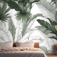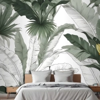 Kömür Muz Yaprağı Yatak Odası Duvar Kağıdı