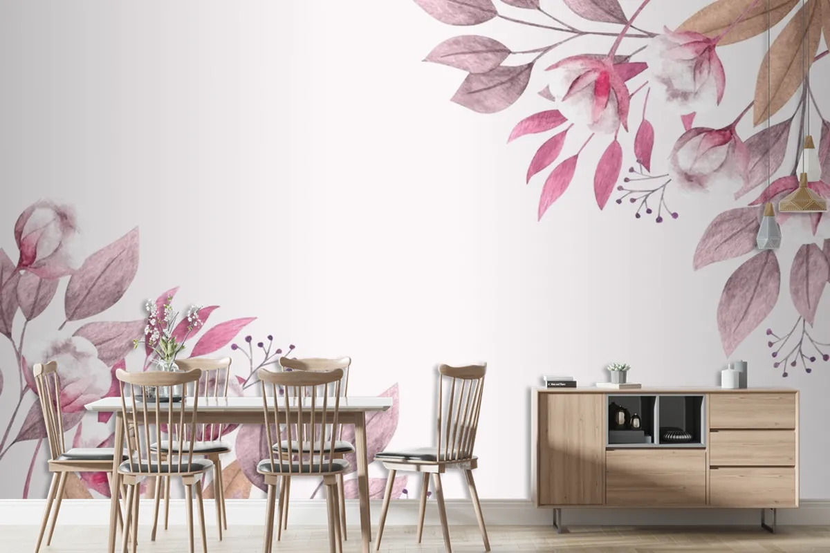 Kopya Uzay Bahar Arkaplanı Çiçekler Ve Yapraklar Duvar Kağıdı