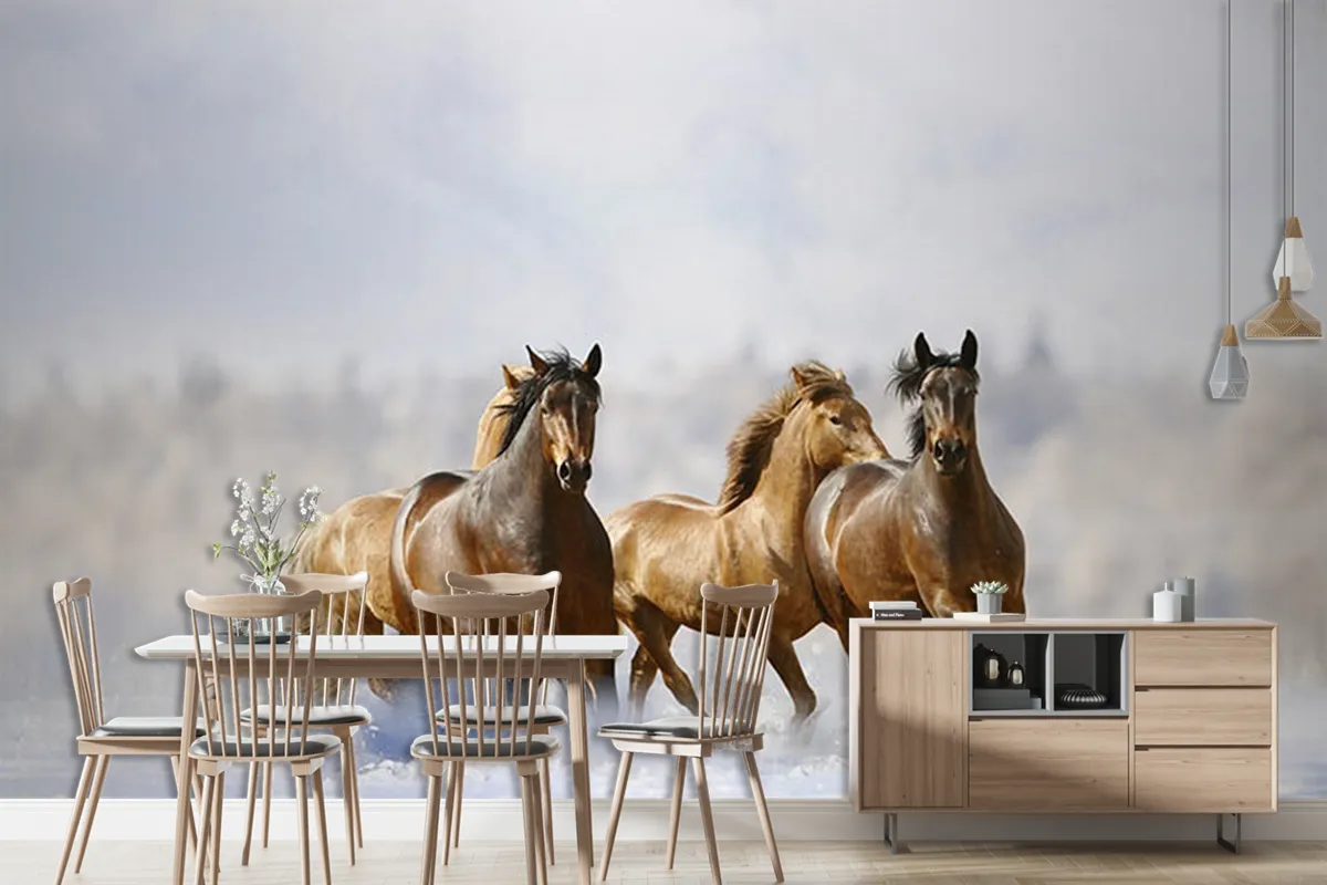 Koşan Atlar Duvar Kağıdı 3D