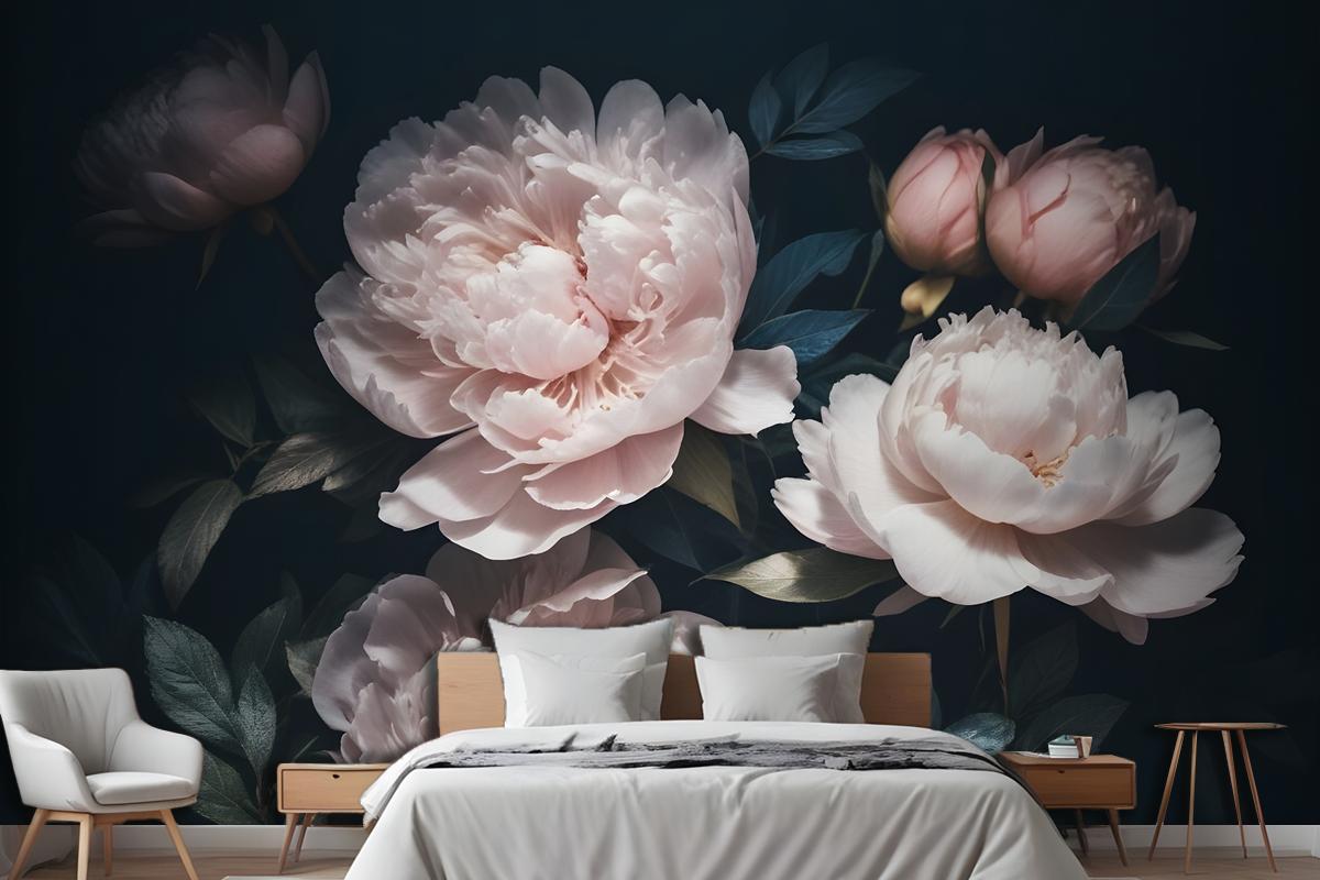 Koyu Çiçekli Şakayık Buketi Yatak Odası Duvar Kağıdı