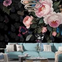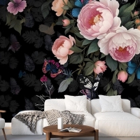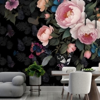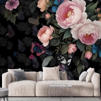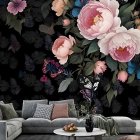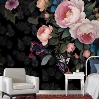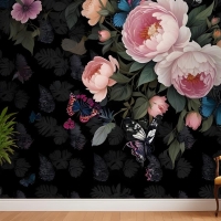 Koyu Pembe Çiçekler Ve Sarı Kelebek Duvar Kağıdı