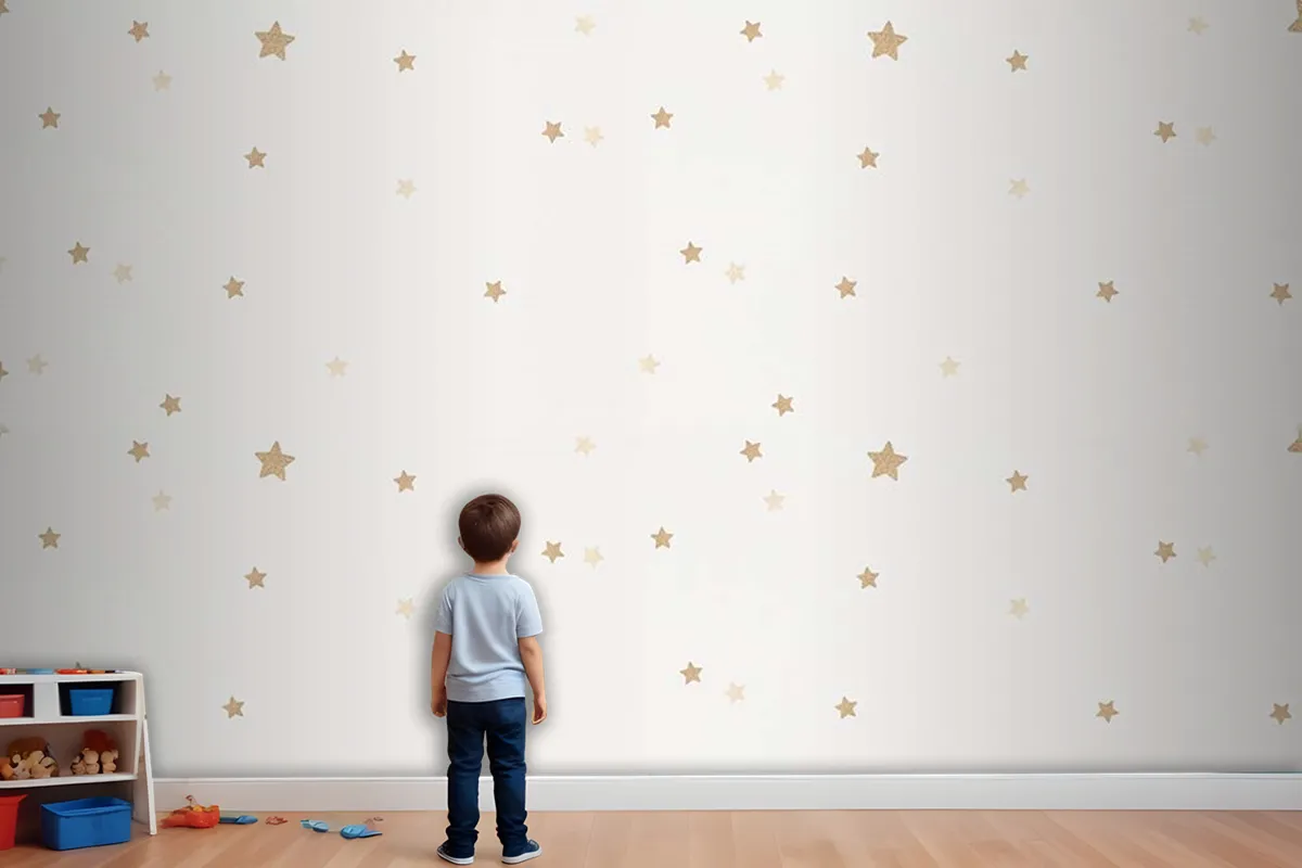 Krem Bej Yıldızlı Çocuk Odası Duvar Kağıdı