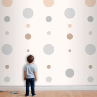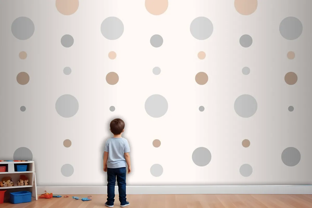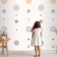 Krem Çocuk Odası Duvar Kağıdı Duvarında Estetik Puantiyeli Desen