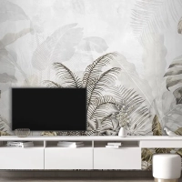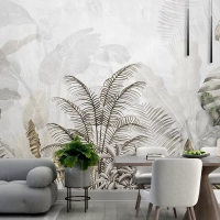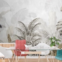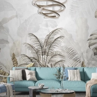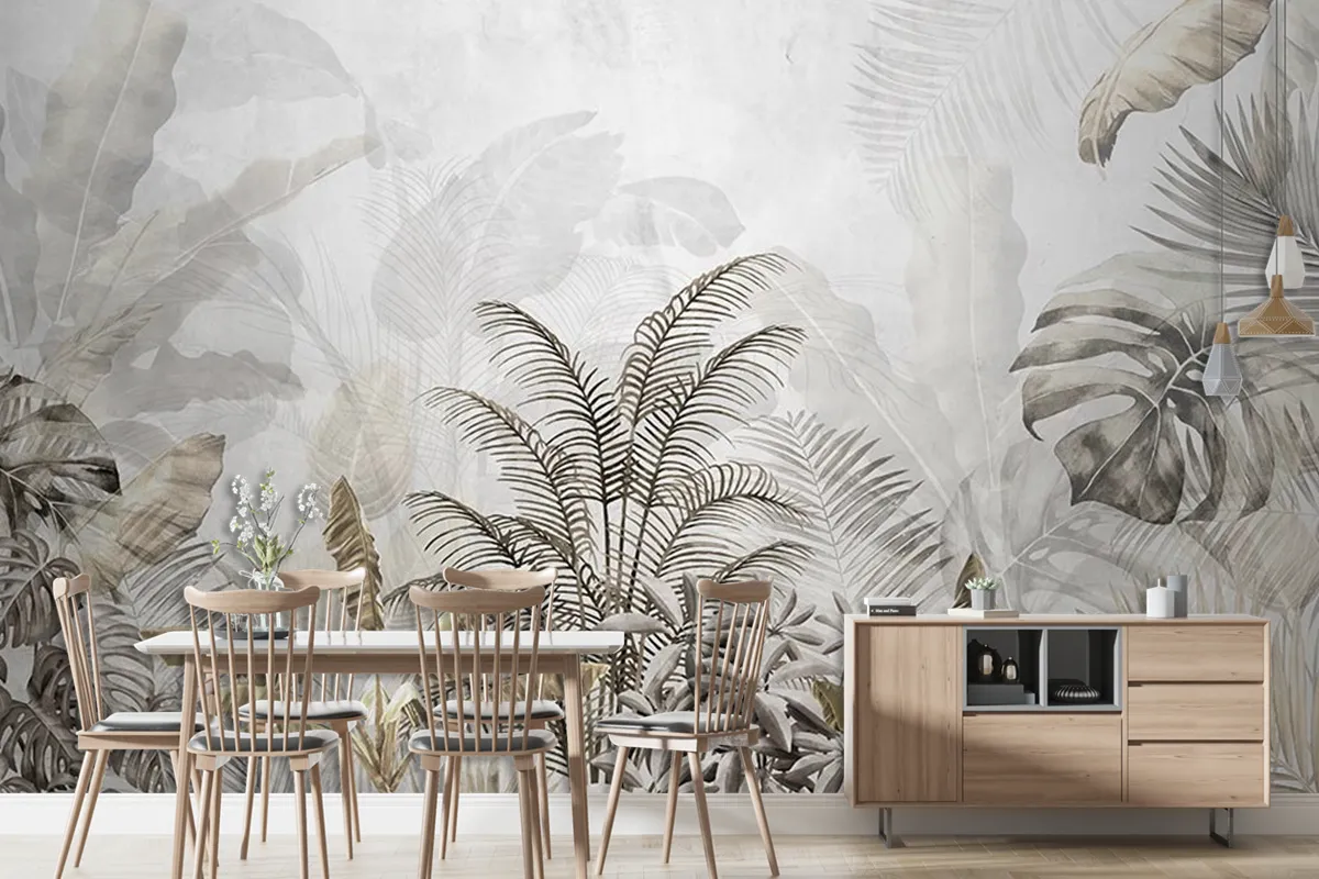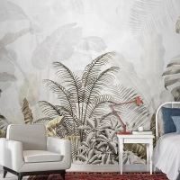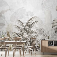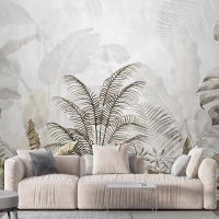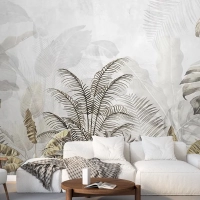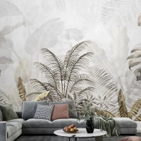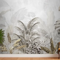 Krem Gold Tropikal Yapraklar Ve Ağaçlar Duvar Kağıdı