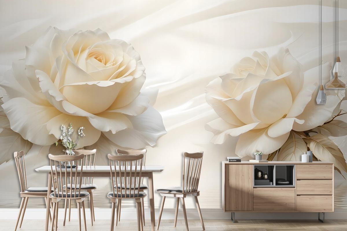 Krem Gül Çiçek Su Desenli Duvar Kağıdı