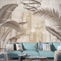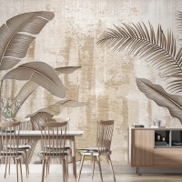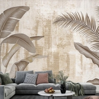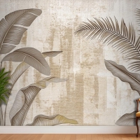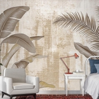 Krem Tonlarında Bitkisel Desen Vintage Duvar Kağıdı