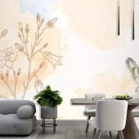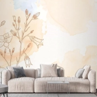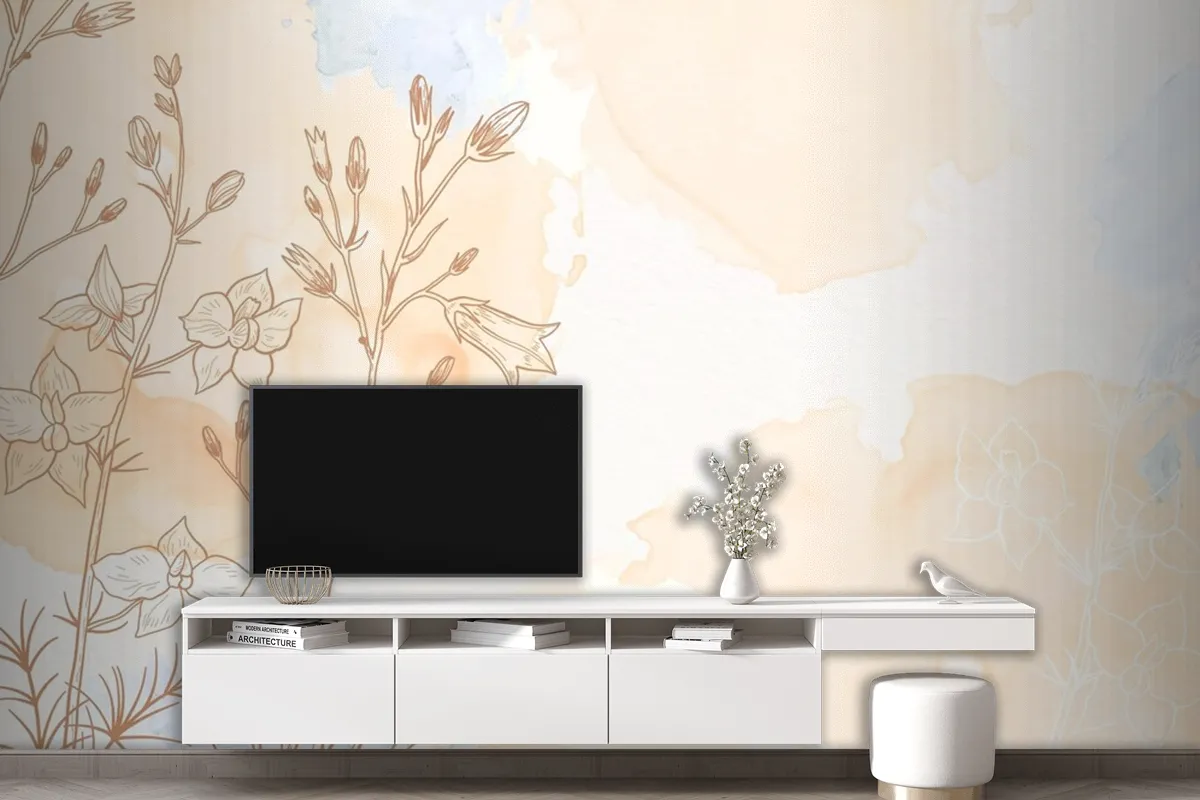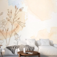 Krem Tozu Pastel Elle Çizilmiş Çiçekli Oturma Odası Duvar Kağıdı