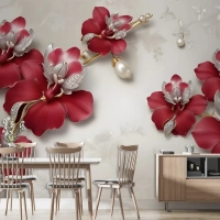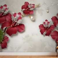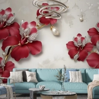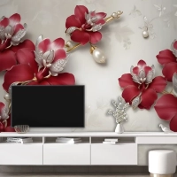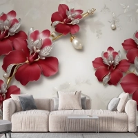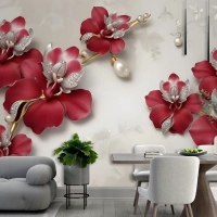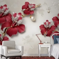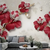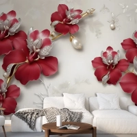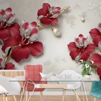 Kristal Kırmızı Çiçek Sanatı Duvar Kağıdı