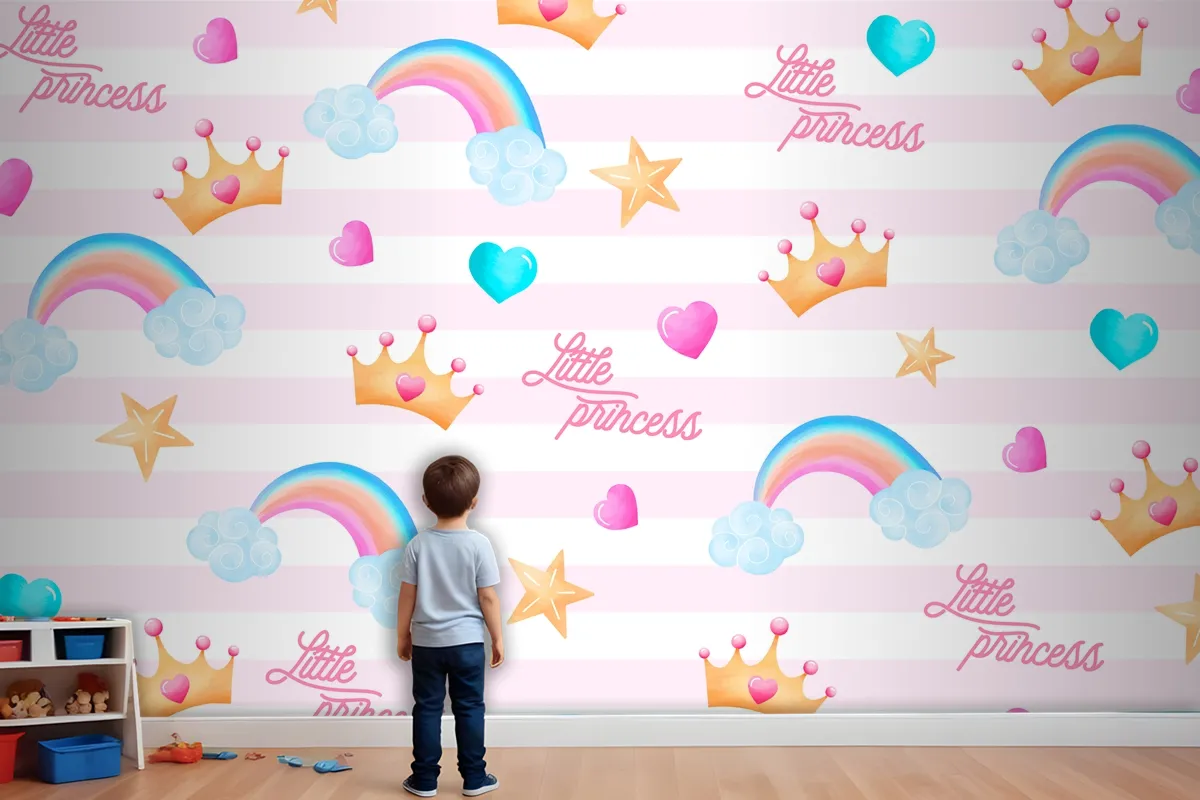 Küçük Bir Prenses Çocuk Odası Duvar Kağıdı İçin Güzel Unsurlarla Sevimli Desen