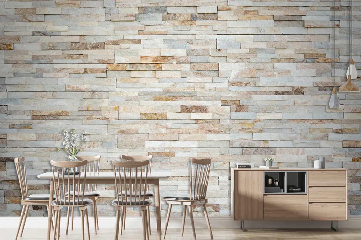 Küçük Tuğlalar Açık Taş Desen Duvar Kağıdı