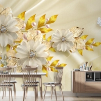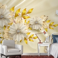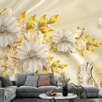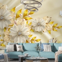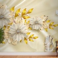 Kuğu Kelebek Çiçekli Arka Planlı 3D Duvar Kağıdı