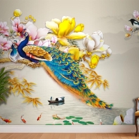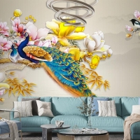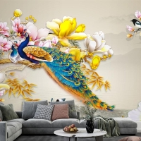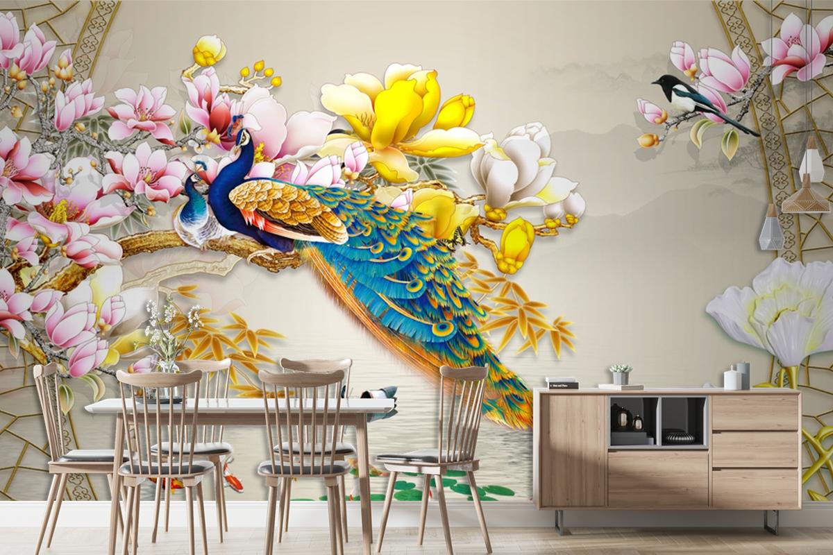 Kuş Deniz Çiçekli Arka Planlı 3D Duvar Kağıdı