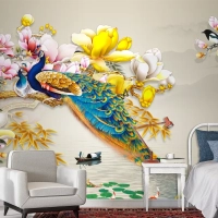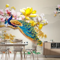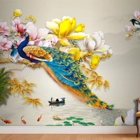 Kuş Deniz Çiçekli Arka Planlı 3D Duvar Kağıdı