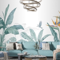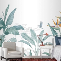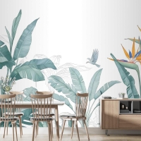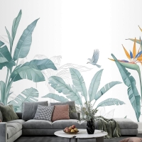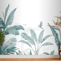 Kuşlu Tropikal Muz Yaprağı Duvar Kağıdı