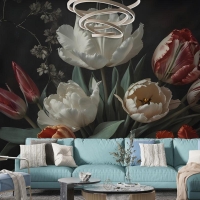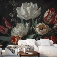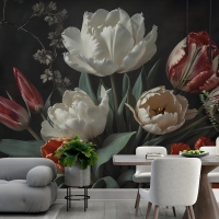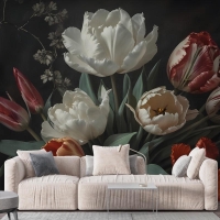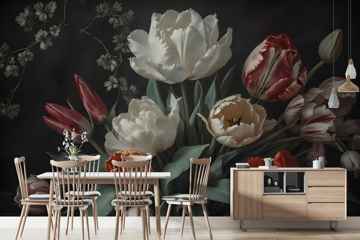 Laleli Koyu Çiçek Hollanda Buketi Duvar Kağıdı