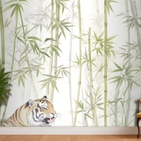Leopar Duvar Kağıdı Duvar Resimleri Ile Bambu Ağaçları