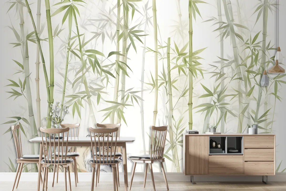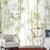 Leopar Duvar Kağıdı Duvar Resimleri Ile Bambu Ağaçları