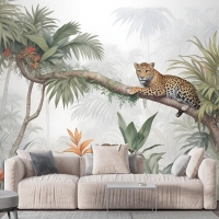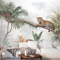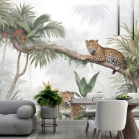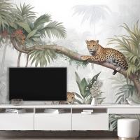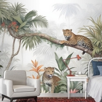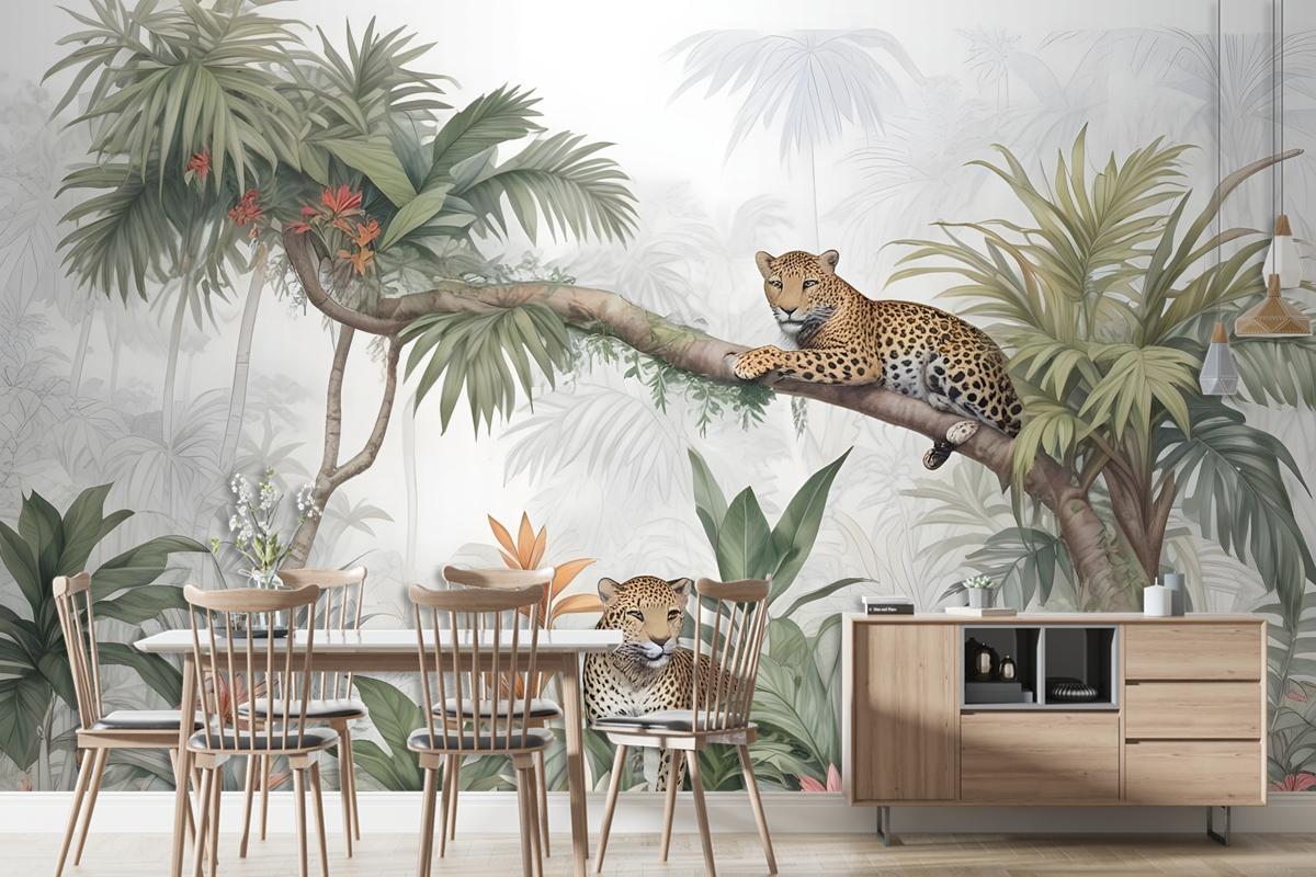 Leoparlar Ve Tropikal Yapraklar Duvar Kağıdı