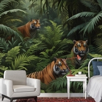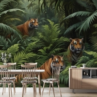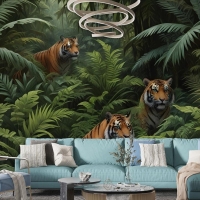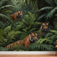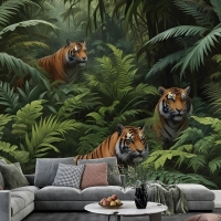 Leoparlı Karanlık Tropikal Ağaçlar Duvar Kağıdı