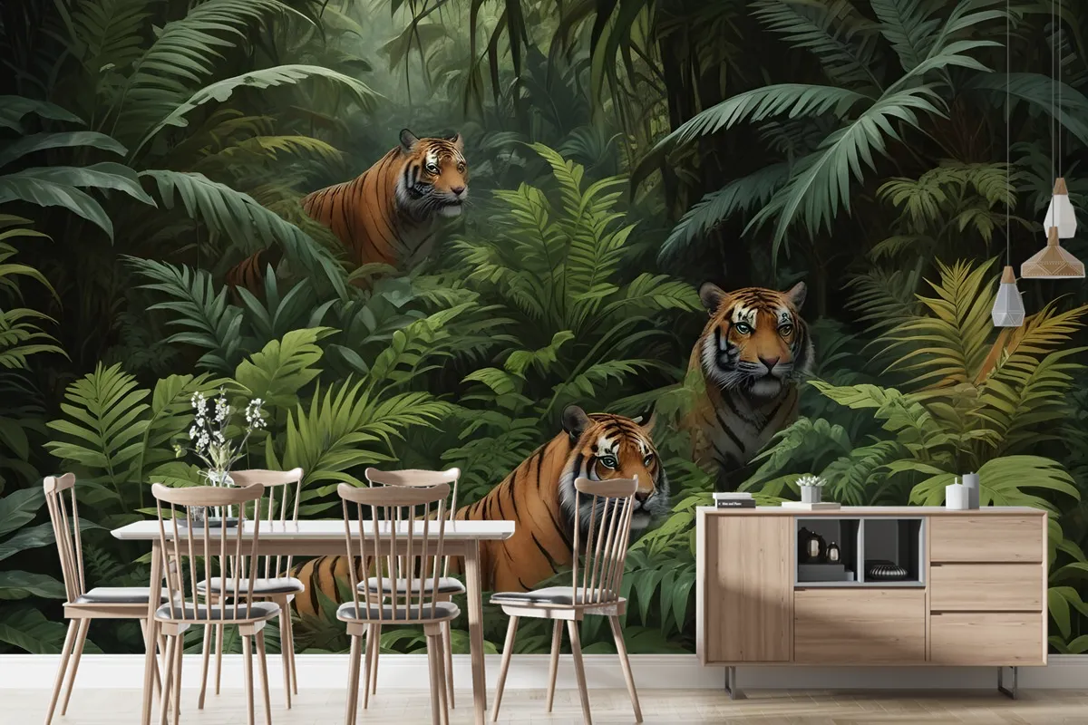 Leoparlı Karanlık Tropikal Ağaçlar Duvar Kağıdı
