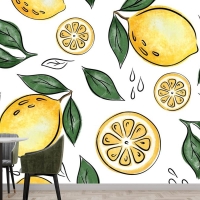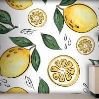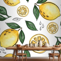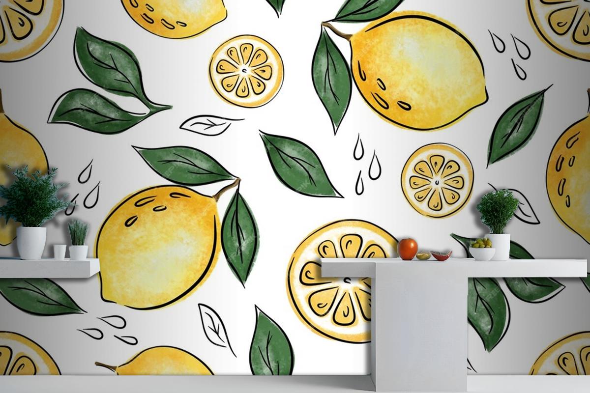 Limonlu Ve Yapraklı Sulu Dikişsiz Desen Mutfak Duvar Kağıdı