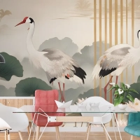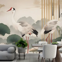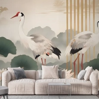 Lotus Çiçekleri Ile Çin Turna Kuşları Duvar Kağıdı