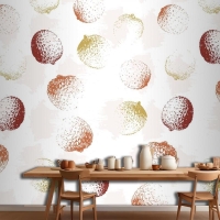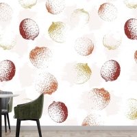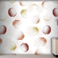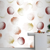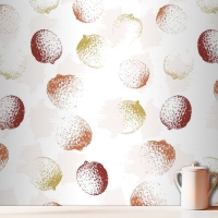 Lychee Meyve Deseni Renkli Vintage Vektör Dokular Mutfak Duvar Kağıdı
