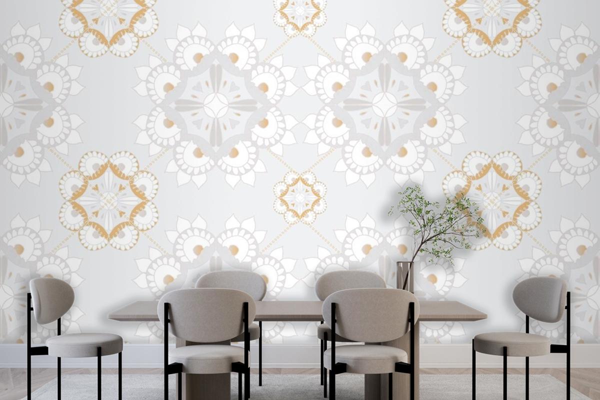 Mandala Gri Hint Desenli Çiçek Arka Plan Duvar Kağıdı